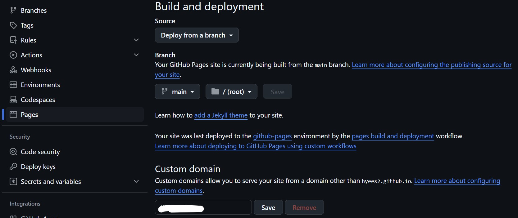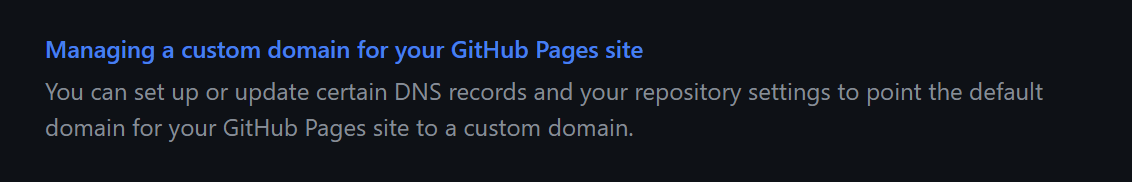 아래 조금 내려가서 Managing a custom domain for your GitHub Pages site