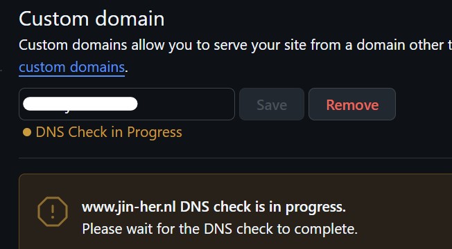 그리고 SAVE를 누르면 DNS Check in Progress 라고뜬다
