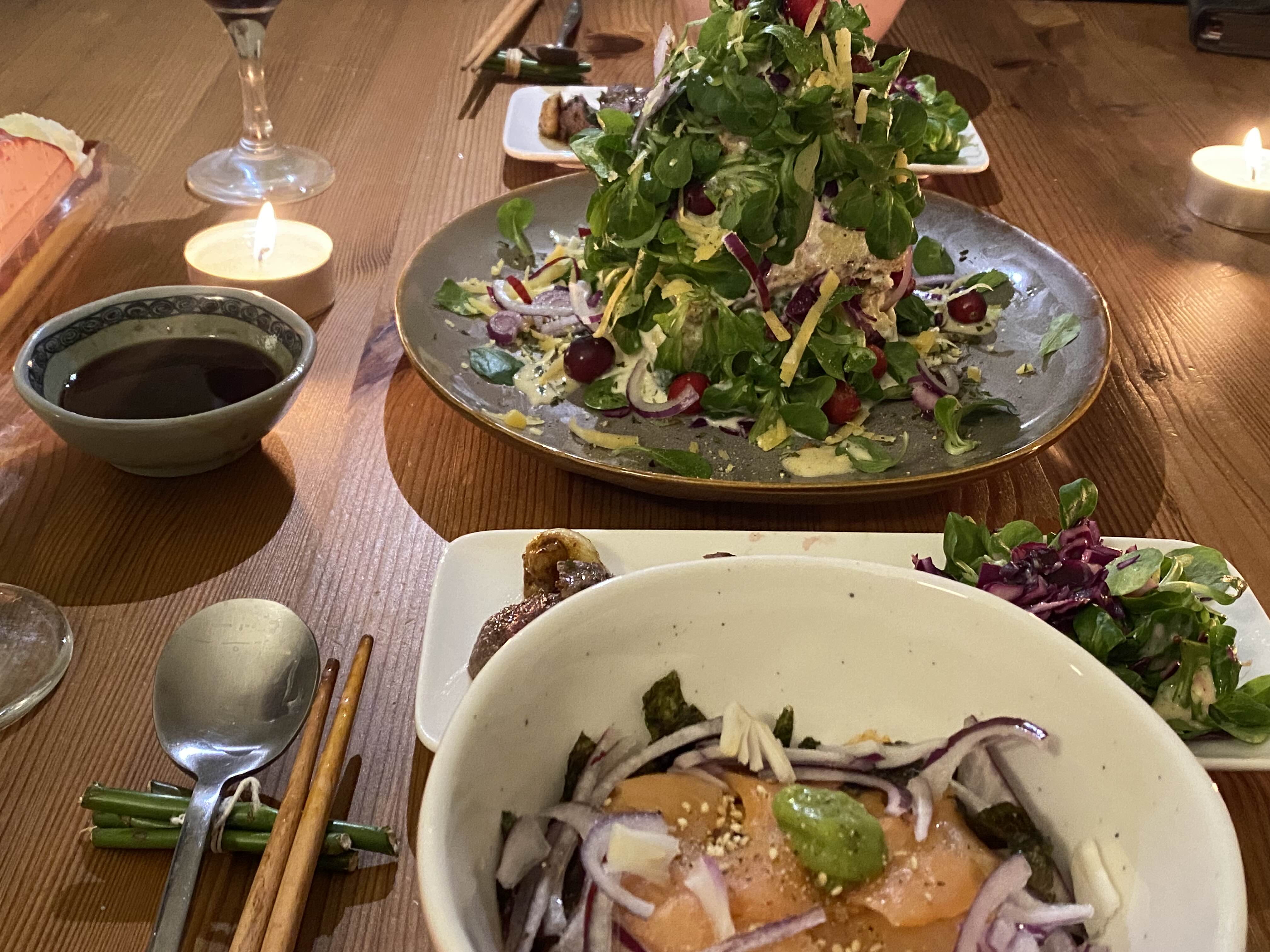 아무튼 사케동이랑 스테이크도 꿔먹고 친구가 만든 감자트리 ㅋㅋ 는 의외로 맛있었다.