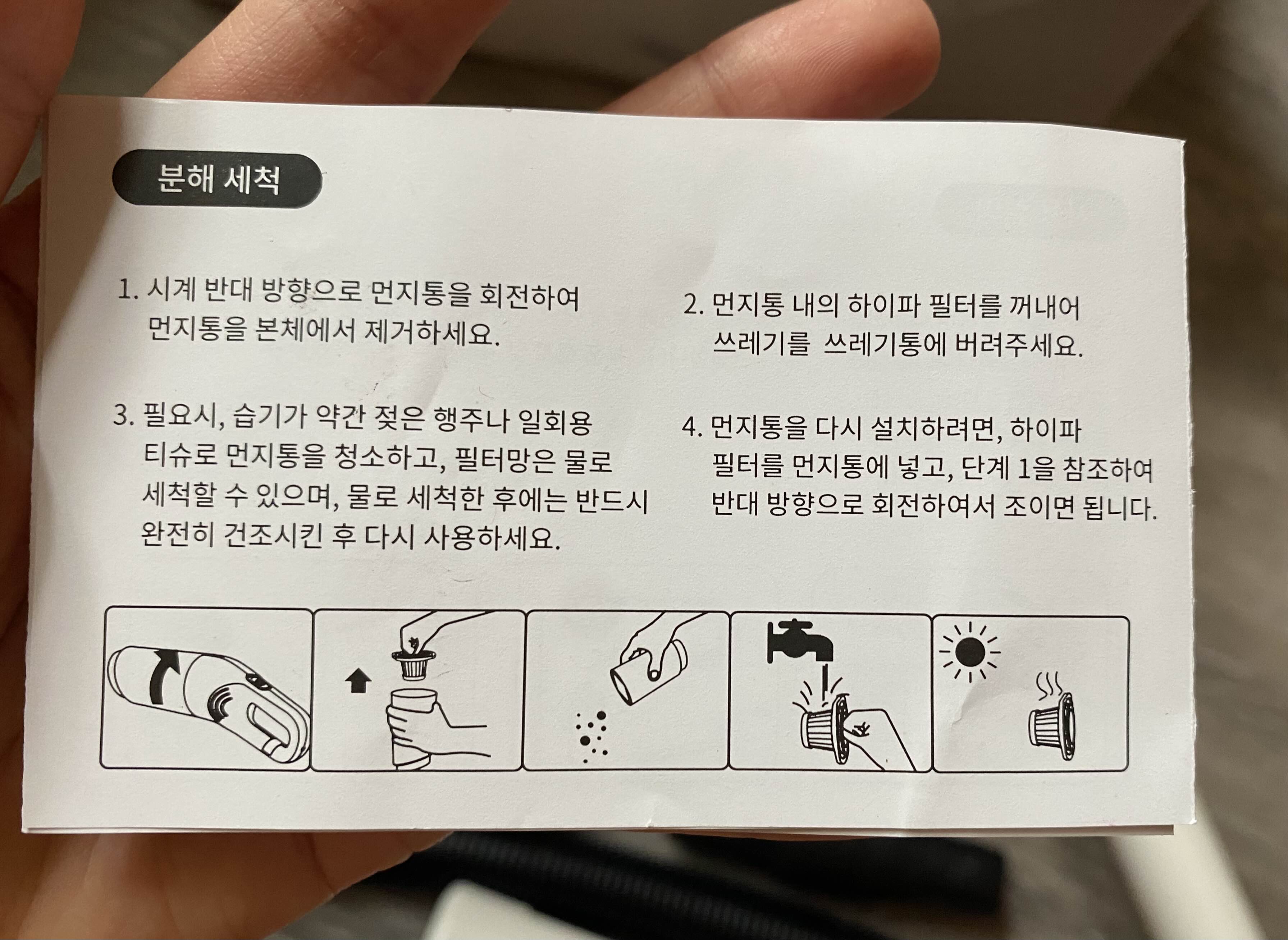 분체식 먼지통이라 접촉 할 필요없이 한번에 먼지도 비울수있다.