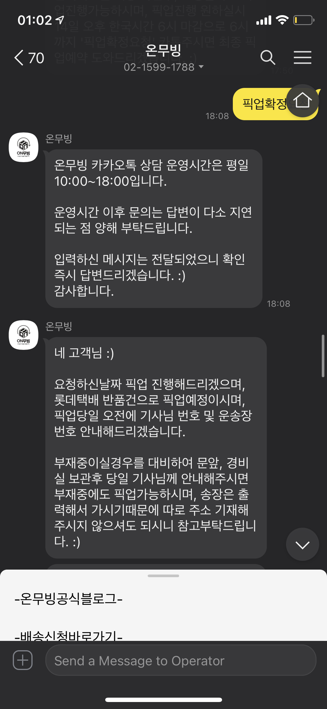 8.답변오면 몇가지 공지사항과 또 다시 픽업확정요청을 입력하라고 해요