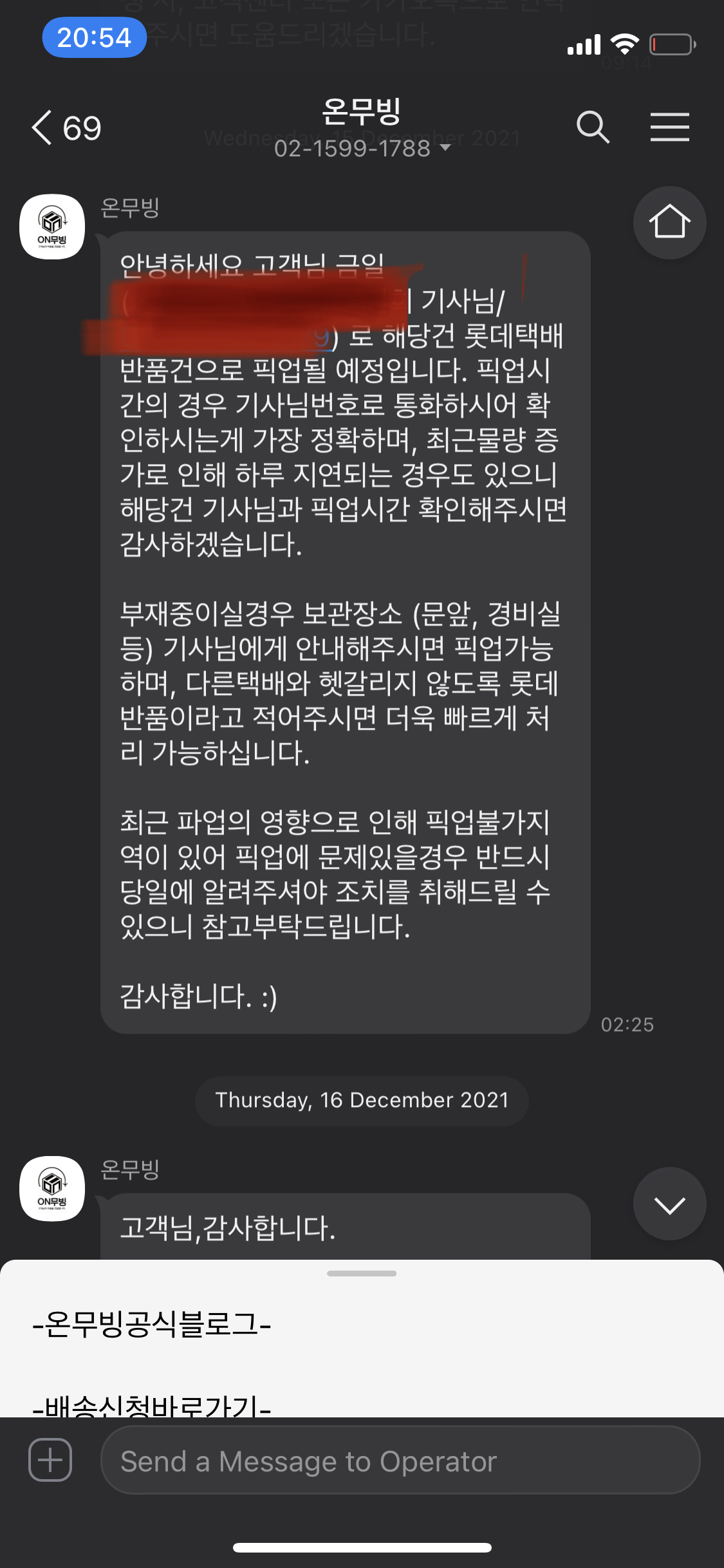 그럼 이렇게 기사님 번호와 송장과 함께 보내주십니다.ㅎ