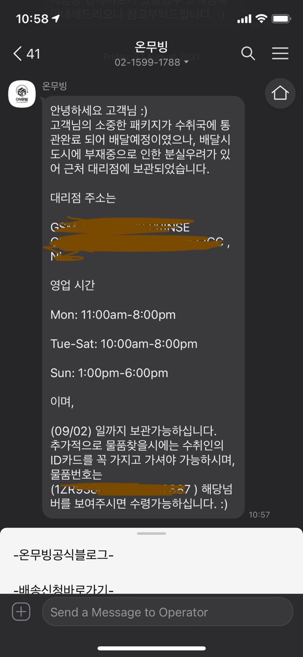 아.. 해외살이 하신분들...택배 제때 안받으면 이상한데로 맡겨버려서 내가 찾으러가야하는거아시죠