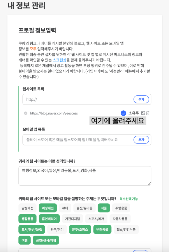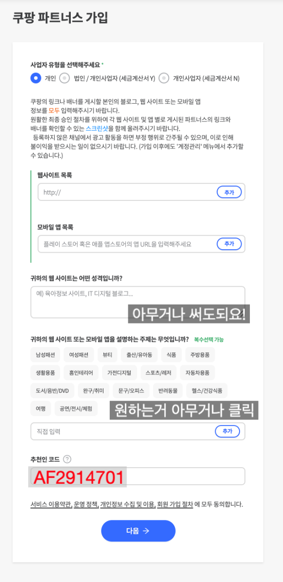 이제 쿠팡 파트너스 가입을 진행해야합니다.