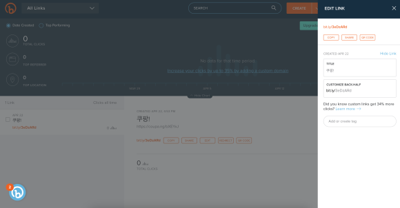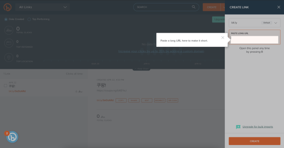 2. Create -> 아까 쿠팡에서 받은 링크 복붙
